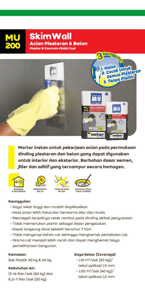 Karena memiliki susut muai yang rendah serta daya rekat yang tinggi dan lebih elastis, maka dapat meminimalkan resiko munculnya retak rambut pada dinding.