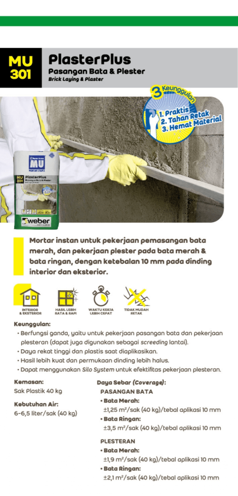 • Kadar Air BS EN 1015-1: <0,5%.